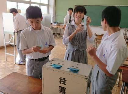 10月11日(木)生徒会役員選挙その7 さきに選挙管理委員が投票をしました。