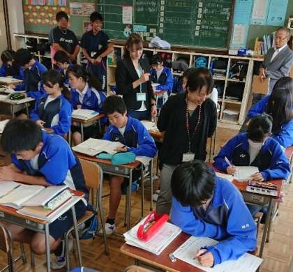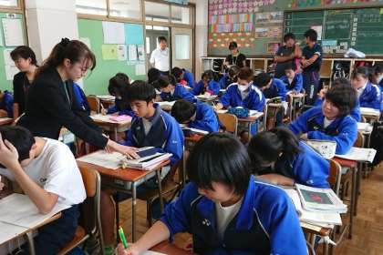 写真は、2校時目の3年2組国語の授業です。授業者は担任の渡辺香澄先生です。