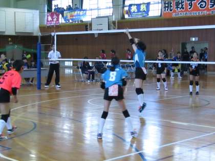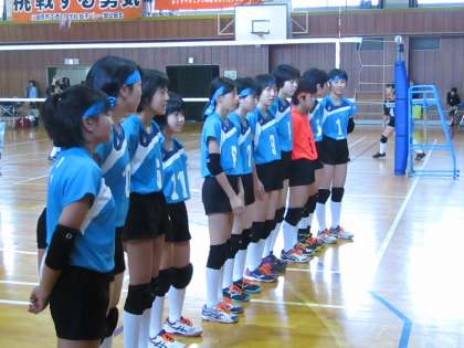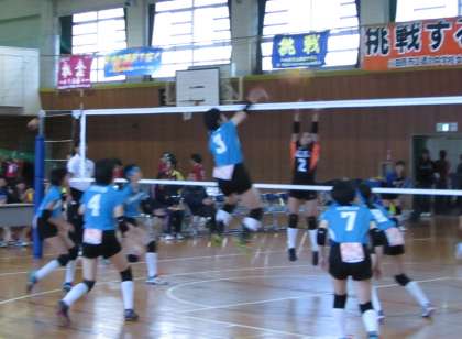 写真は、初戦の国府津中学校戦の様子です。ゲーム序盤から千代中の元気あふれるプレーでペースをつかみ、終始リードする展開となりました。