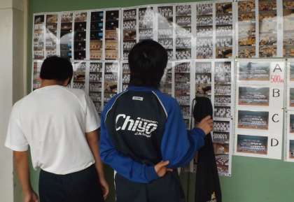 金工室前の廊下に先日行われた文化活動発表会ステージの部・合唱コンクールの写真が掲示されています。気がつけば合唱コンクールからもう2週間が過ぎました。本当にあっという間ですね、見ている生徒たちには懐かしい写真なのでしょうか?