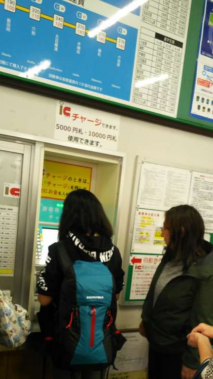 写真(上)は、大雄山駅で切符を購入しているところです。