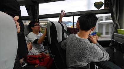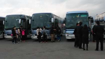 2月21日、卒業遠足で八景島シーパラダイスに出発です。30分以上前から集合場所に来ていた生徒もいれば、遅刻してきた生徒もいましたが、全員そろってバスは無事出発しました。