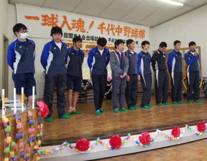 3年生から一言。そして、1・2年生から「記念品」を贈りました。