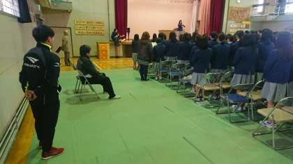 3校時目の体育館の様子です。「お別れのことば」の場面でした。「時の旅人」の合唱は迫力があります。
