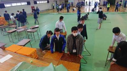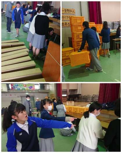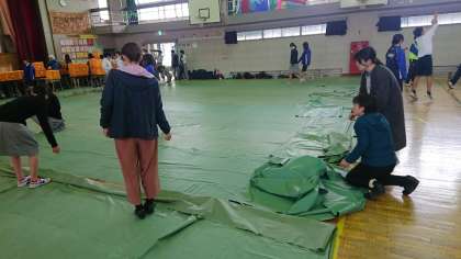 ひな祭りのための「ひな壇」ではなく、卒業式用の4段の高さ違いの「壇」の設置の様子です。これでどこに立っても3年生の顔が保護者席からよく見えるようになります。