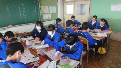 鈴木元子先生の授業です。班別に発表の練習をしているところです。
