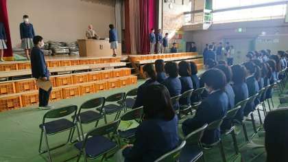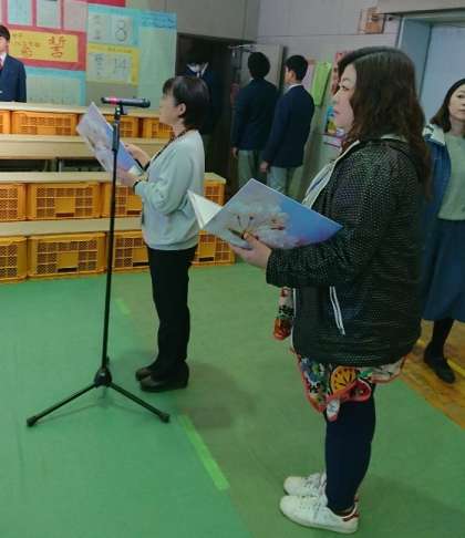 写真(下)は、鰺坂由香先生と岩本絵理子先生による呼名です。
