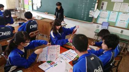 鈴木元子先生の授業です。班ごとに発表する準備をしているところです。