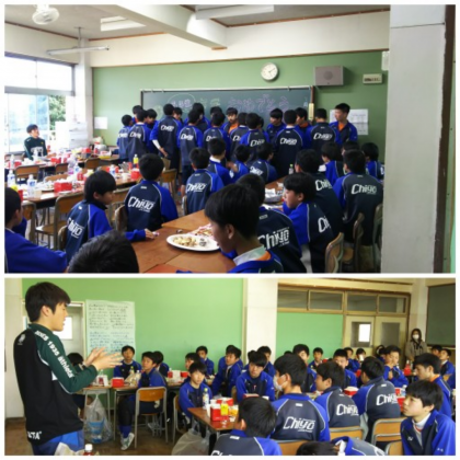 3年生からの言葉に真剣に耳を傾けた後輩たち。先輩から学んだことを活かして、千代中サッカー部を引き継いでほしいと思います。