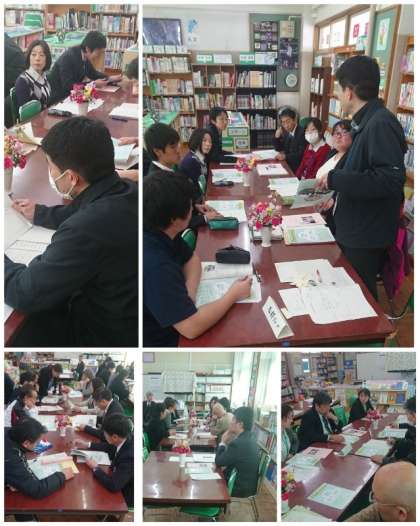 今日の放課後は、部活動をすべて休みにして、「第4回校内研究全体会」を図書室で行いました。今日も横浜国立大学の関戸英紀先生にお越しいただき、指導助言をしていただきました。