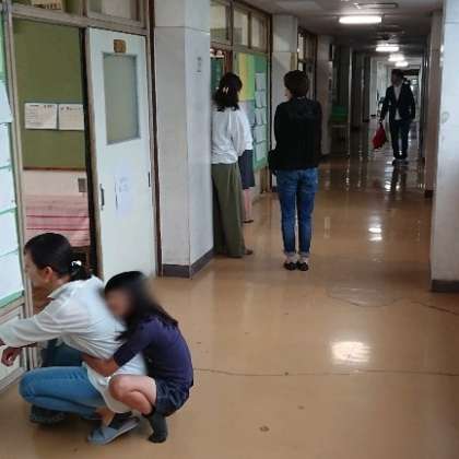 今日は「土曜学級」です。いわゆる授業参観日です。今週は月曜日から授業公開週間を行ってきて、今日がその締めくくりです。妹や弟も来てくれています。