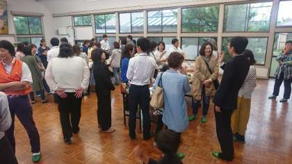 大雨にもかかわらず、口コミで参加者が増え、保護者の参加人数は25名、先生方の参加は20名でした。用意したお菓子がたりなくなるほどでした。