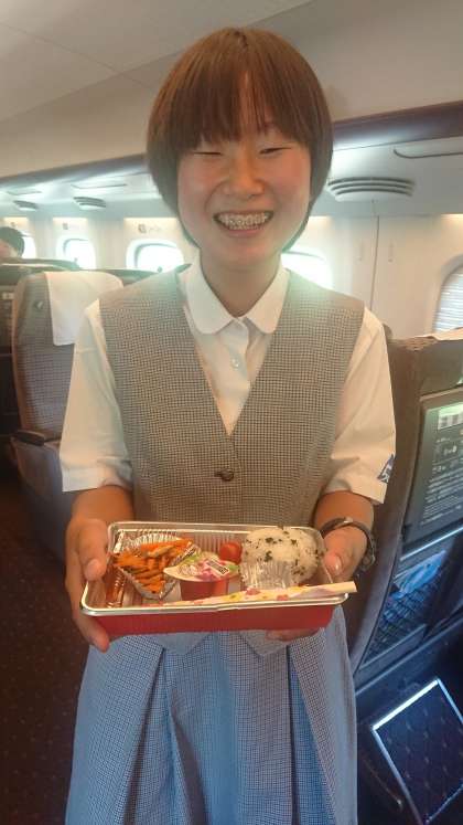 写真(下)は、お母さんからの愛情弁当を、見せにきてくれたところです。