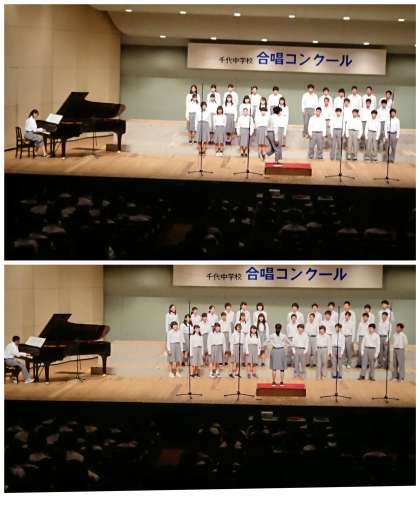 2年生の合唱です。学年合唱から始まり2組、5組、4組、3組、1組の順に発表しました。