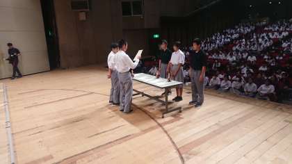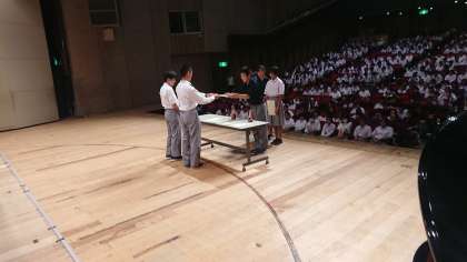 表彰です。写真は1年生のみです。2、3年生も撮ろうとしたのですがカメラが突然起動せず、写せませんでした、ごめんなさい