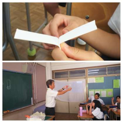 今日は牛乳パックとストローを使って「くるくる竹とんぼ」を作りました。