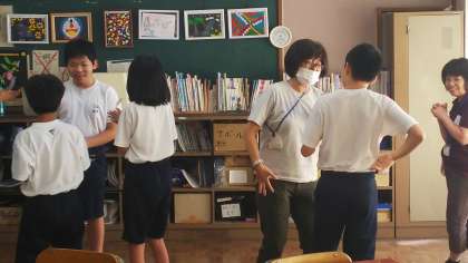 写真は無我夢中でタケコプターを飛ばしているところです。さて、誰のタケコプターが一番長く飛び回っていられたでしょう。