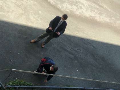 5月7日(木)、理科の谷先生と木村先生が理科の教材づくりのために、校庭の植物の写真を撮っていました。二人とも、早く授業がしたくてうずうずしているのでしょう。