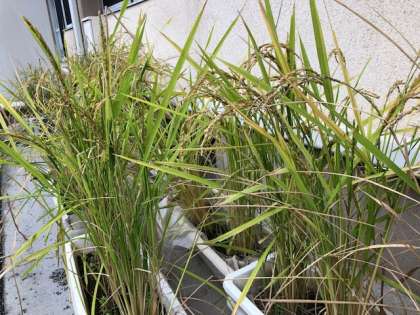 9月23日(水)の朝、学校の稲に雀が群がっていました。稲穂を懸命についばんでいました。私が近づくと一斉に飛び立ちました。美味しいお米ができているのだろうと思いました。
