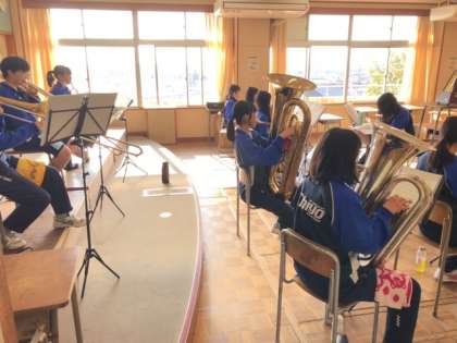 12月25日(金)、今日は冬休みの初日。吹奏楽部は、分散して練習していました。メトロノームの音が廊下に響く中、見に行ったときは隣の部屋と音を合わせながら演奏しているように感じました。