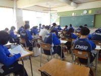 5校時に3年生は学年集会を行いました。最初に今日から来ている、学生ボランティアの紹介がありました。千代中の先輩なので、早く慣れて気軽に声をかけられるようになるといいですね。