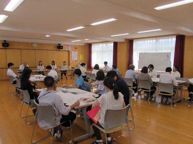 本校では、研究テーマ「主体的に学びに向かう子をめざして」のもと、窓口を国語科とし、子どもたちが主体的な学びを生み出すための手立てはそうすればよいかを研究しています。先生方も熱心に協議していました。