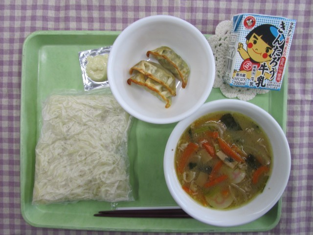 <給食委員会の子どもたちからのお知らせ>今日のみそは、小田原のいいちみそを使っています。いいちみそ、知っていますか?みそは「畑の肉」、大豆から作られているので、みんなの血や肉をつくるはたらきがあります。大豆より、すがたをかえた「みそ」のほうがみんなの体に吸収されやすくなります。