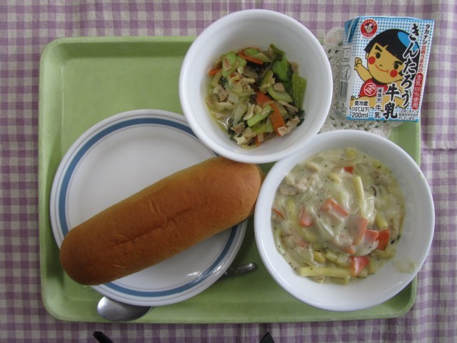 <給食委員会の子どもたちからのお知らせ>食べると疲れをとってくれるビタミンは何でしょう?それは「疲労回復のビタミン」と言われている「ビタミンB1」です。ぶた肉などに含まれています。ビタミンBはからだ全体の細胞を元気にしたり、ひふやねんまくを健康にするはたらきがあります。今日の給食に入っている にんじんやパセリ、チンゲン菜にもたくさんのビタミンが含まれています。