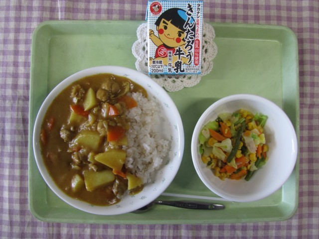 <給食委員会の子どもたちからのお知らせ>春野菜のソテーには、今とてもおいしいきゃべつやにんじん、アスパラガスが入っています。その時期においしく食べられるものを“旬”と言います。旬の食べ物は、新鮮でおいしく、栄養が豊富に含まれています。給食でも、旬の食べ物を取り入れていくので楽しみにしていてください。