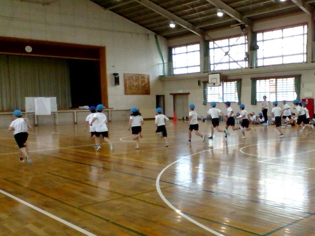 新体力テストの種目の一つである『20mシャトルラン』を実施しました。電子音のリズムに合わせて20mの距離を往復し、全身持久力を測定します。次第に速くなるペースに苦戦しながらも、一人ひとりが一生懸命走っていました。