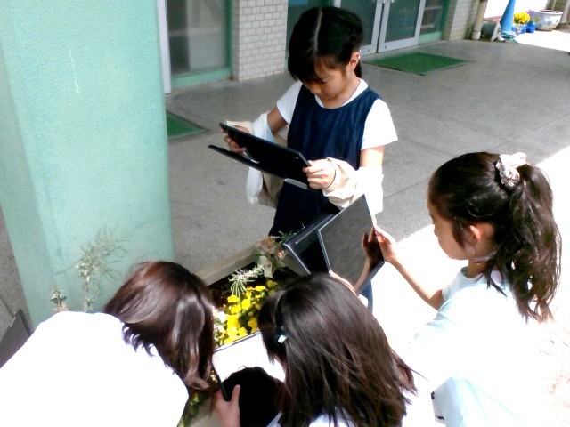 - 3年生になり、新しく『理科』の学習が始まりました。まずは校庭に出て、春の植物探しです。タブレットを手に持ち、色とりどりに咲いた花をじっくりと観察しました。今日は天気もよく、春の訪れを五感で感じることができました。