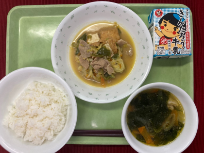 今日の「わかめ」は、神奈川県の三浦半島の近くでとれたものです。給食では地元でとれたものを積極的に使っています。みなさんも地元でとれた食べ物をさがしてみてくださいね。