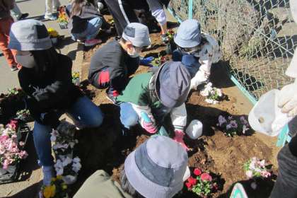 2月27日(火)4年生が、今年最後のフラワーロード植え替えを行いました。千代小学校前を通る方々が気持ちよく通ることができるように、心を込めて一つひとつ丁寧にパンジーを植えたので、ぜひご覧ください。