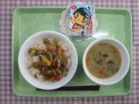 深川めし けんちん汁 かぼちゃプリン 牛乳