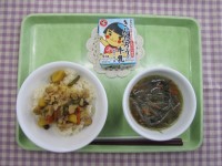 今日は「学校給食雪見だいふく」をつけました。この雪見だいふくは、今から32年前に学校給食用に開発されたものです。温かみあるイメージのある和菓子のだいふくもちと冷たい洋風のアイスクリームを一緒に味わうことができます。また、カルシウムや鉄分など成長期の児童に必要な栄養成分が強化されています。