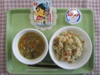 牛乳 カレーライス 春キャベツのごま炒め