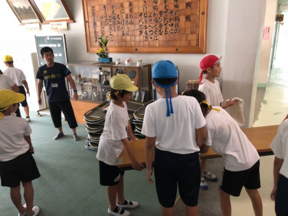 運動会前日、1〜4年生は下校し、高学年の5,6年生が中心となって明日の運動会に向けての準備を行いました。千代小の児童は本当によく働きます。頼もしい限りです。