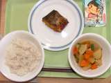 麦ごはん 鰆のカレー醤油焼き 鶏肉と大根の煮物 牛乳 今日は鶏肉と大根の煮物...