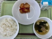 3月17日(火)今日の献立は牛乳、ご飯、ヤンニョムチキン、わかめと豆腐のスープです。今日はヤンニョムチキンについてです。ヤンニョムチキンは、鶏肉に衣をつけて揚げた後、甘辛いタレをからめた料理です。「ヤ...