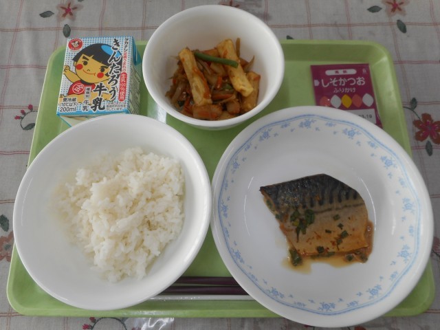 ごはん 牛乳 ふりかけ さばの香味焼き 変わりきんぴら