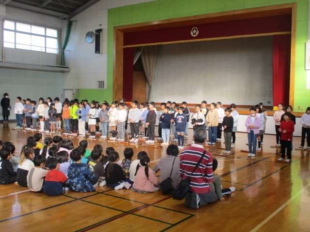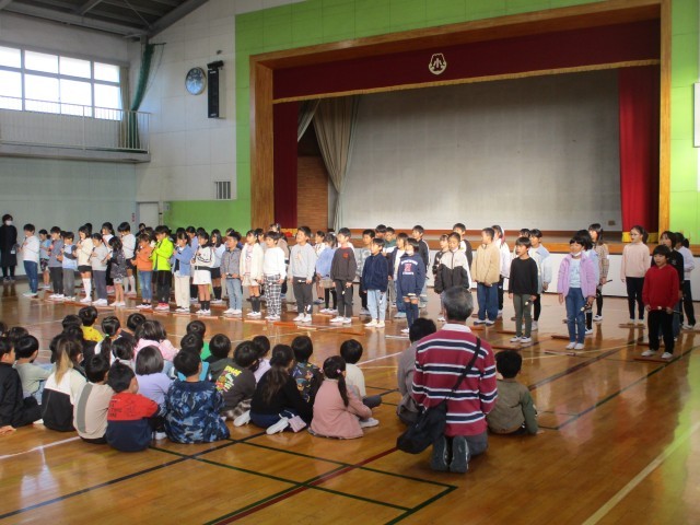 今回は、3年生の発表です。夏休みに練習した「メリーさんの羊」、リコーダーと歌のアンサンブル「森の子もり歌」、歌と手拍子・足踏みで表現する「アラムサムサム」の3曲を発表しました。