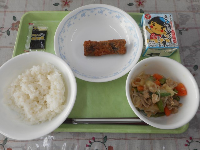 ごはん のりの佃煮 牛乳 塩肉じゃが カマス棒のから揚げ
