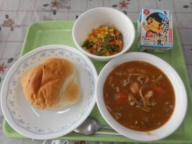 ロールパン 牛乳 きのこのシチュー コーンソテー