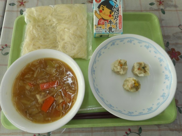 サンマーめんは、横浜発祥のラーメンです。もやしがはいったしょうゆベースのスープで、とろみがついているのが特徴です。とろみがついているので、寒い季節には特におすすめです。しゅうまいには5種類の野菜が使われています。にんじん・とうもろこし・玉ねぎ・ほうれんそう・しょうがです。お肉とそれぞれの野菜の味が合わさって、おいしさがアップしています。味わって食べてください。