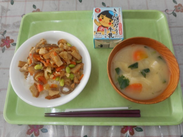 五目ごはん 牛乳 みそ汁