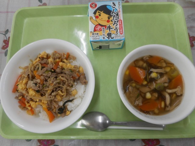 ビビンバどんぶり 牛乳 もずくのスープ