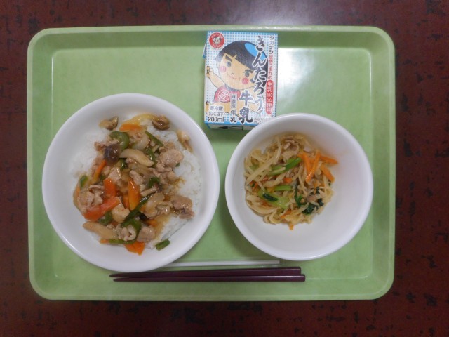 今日の献立は、「スタミナ丼、牛乳、切り干し大根のナムル」です。
