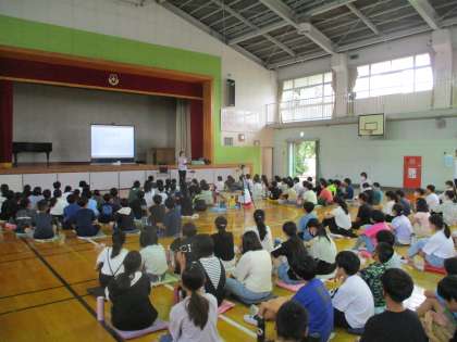 小田原警察署のスクールサポーターの方が来校され、朝会で「夏休みを安全に過ごすために」のお話をしていただきました。1〜4年生は教室でリモート、5・6年生は体育館で直接話を聞きました。その後1校時にも続けて、5・6年生に「考えよう、やってよいこと悪いこと。君ならどうする?どう思う?」のお話をしていただきました。