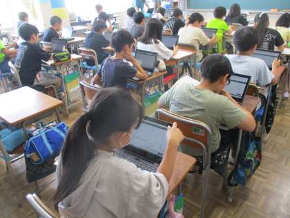4〜6年生が、ステップアップ調査に取り組みました。昨年度までは問題が冊子になっていて、解答用紙に記入する形でしたが、今年度からはCBT(コンピュータを使った試験方式)になりました。集中して取り組むことができました。
