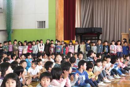 4月12日(火)、対面式がありました。1年生が富士見小学校に入学し1週間が過ぎ、1年生から6年生までが一堂に会するのはこの日が初めてでした。音楽に合わせて1年生がかわいらしく入場した後、「よろしくお願いします」とあいさつをしました。
